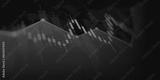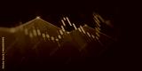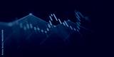 Widescreen abstract financial chart with uptrend line graph and world map on blue color background