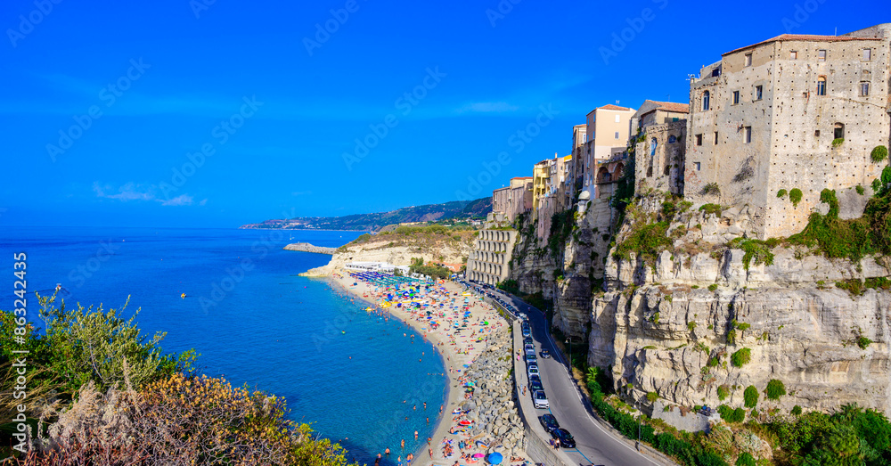 Tropea City Beach - beautiful coast scenery with paradise beach in Calabria - travel destination in southern Italy, Europe
