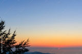 Landscape horizon line in the mountains, pink orange sunset and blue mountains.