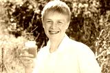 Young boy is put out one's tongue