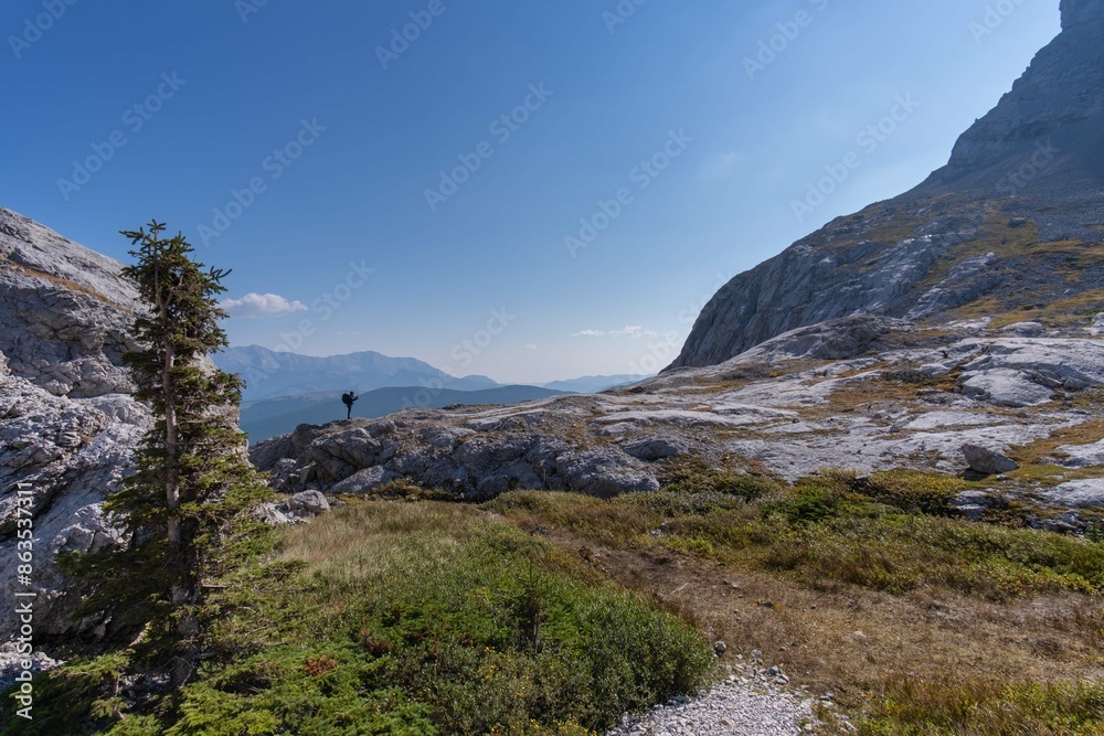 Fantastic sunrise on a high mountain lake in the Canadian Rockies. Kananaskis country.