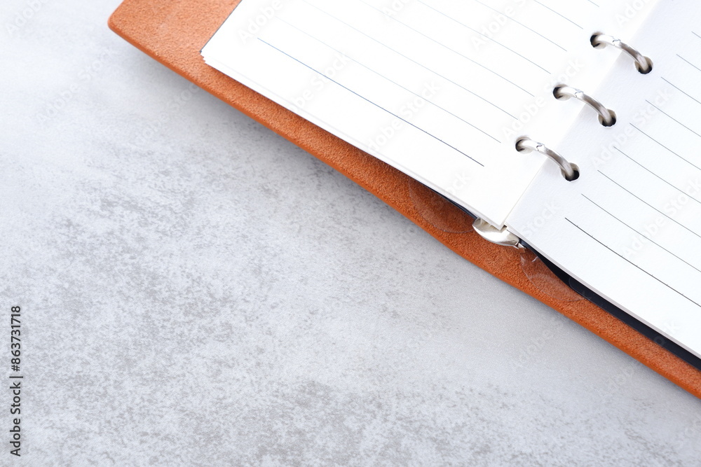 リング式のシステム手帳を開いてデスクワークをしているイメージ