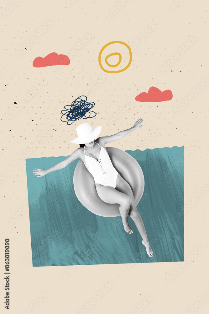 Composite collage picture image of attractive female swimming pool sea summer vacation fantasy billboard comics zine minimal