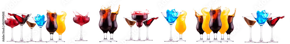 Different alcohol cocktails like beer, martini, soda, champagne, whiskey