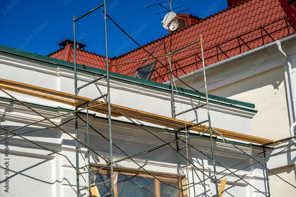 Scaffolding for the restoration of an old building. home renovation.
