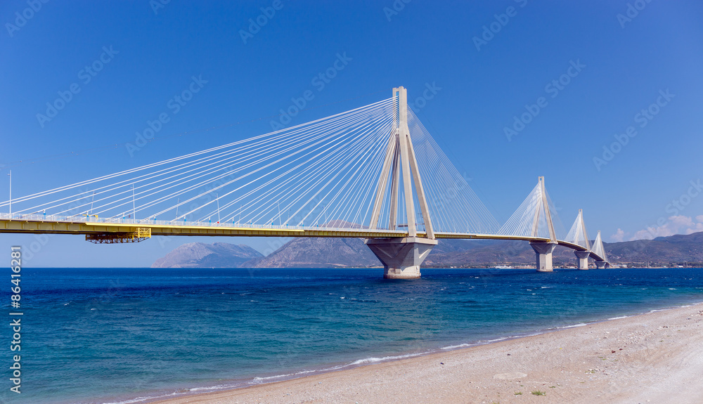 Rio–Antirrio bridge, the longest cable-stayed suspended deck bridge in the world, Peloponnese, Greece