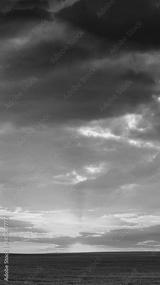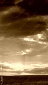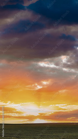 Spring Sunset Sky Above Countryside Rural Meadow Landscape. Wheat Field Under Sunny Spring Sky. Skyline. Agricultural Landscape With Growing Green Young Wheat Shoots, Wheat Germs.
