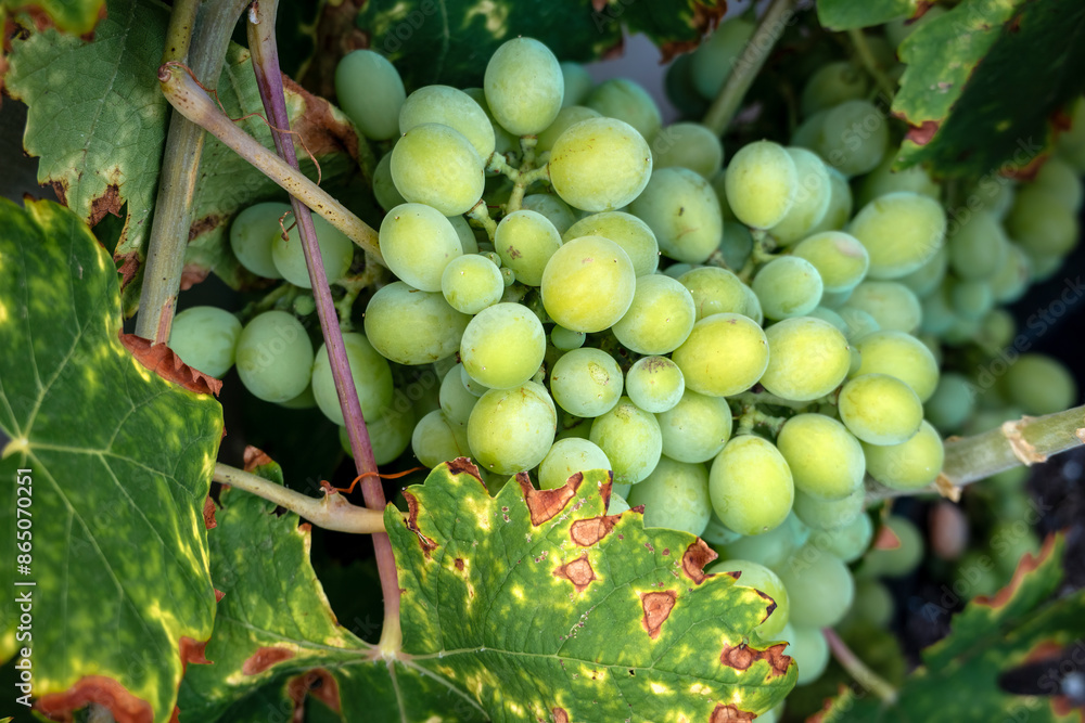 Bunch of grapes ripening on the vine