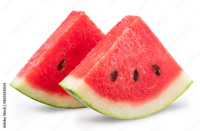 Watermelon triangle slices with seeds isolated on white background. Clipping path.