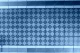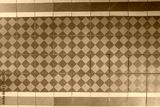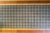 Old floor finished with ceramic tiles with a pattern.