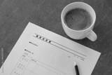 コーヒーを飲みながら、転職活動に欠かせない職務経歴書を書く