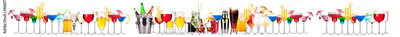Different alcohol cocktails like beer, martini, soda, champagne, whiskey