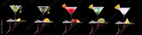 Different alcohol cocktails like beer, martini, soda, champagne, whiskey