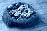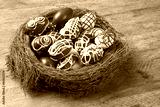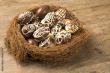 Chocolate Easter Eggs Over Wooden Background