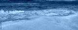 Stunning aerial view of a geothermal crater in Iceland, featuring vibrant blue water surrounded by orange mud and rock, with steam plumes rising from the ground.
