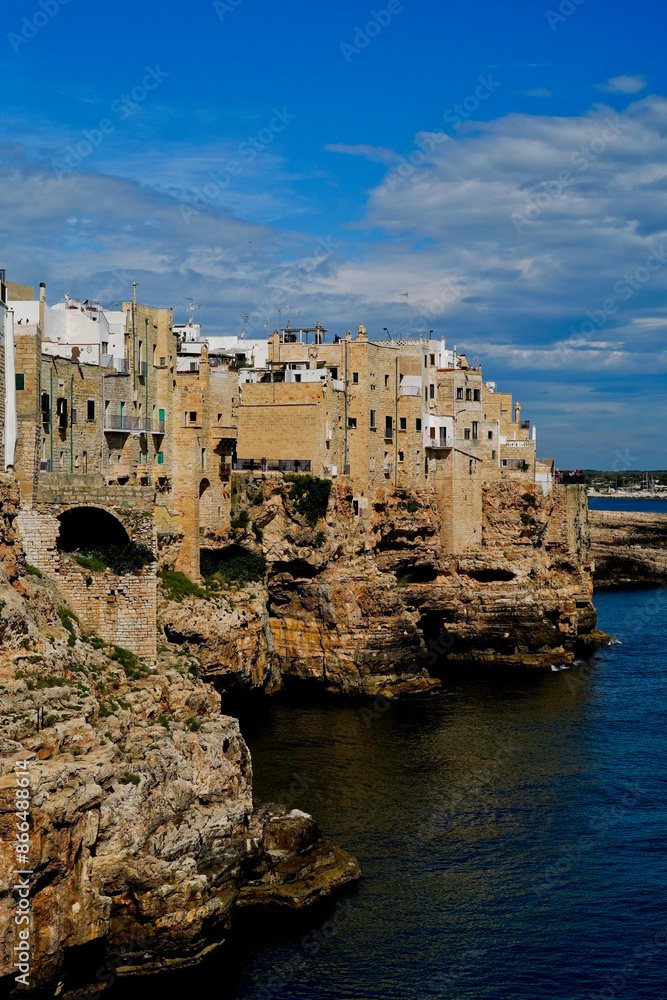 Il famoso borgo di Polignano a Mare affacciato sull'Adriatico, Bari, Puglia, Italia