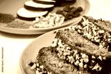 Homemade pastry made of zucchini with nuts and raisin. White background