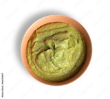 Top view of a bowl with homemade guacamole isolated from the white or transparent background