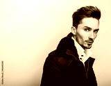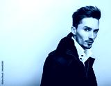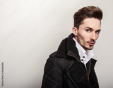Elegant young handsome man in long stylish black coat. Studio fashion portrait.