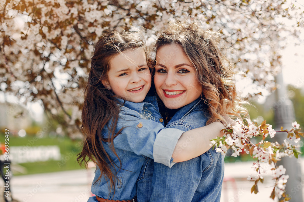 Cute and stylish family in a spring park