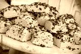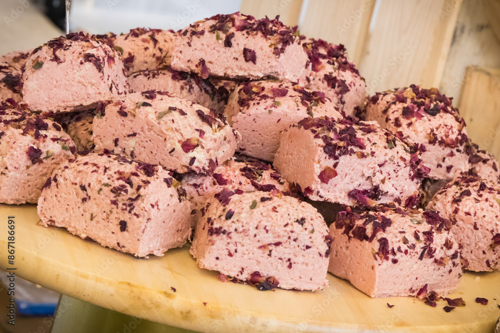 Halva with pomegranate juice and rose petals. Traditional balkan dessert