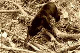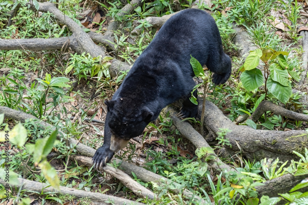 Sun Bear eating papaya in Borneo sanctuary Sabah Malaysia