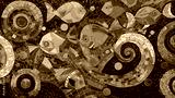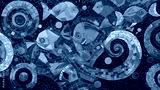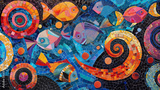 Mosaic artwork of colorful, swirling patterns and colorful sea fish
