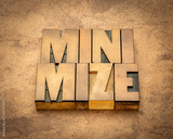 minimize word in vintage letterpress wood type against handmade textured amate paper, simplicity, minimalism and lifestyle concept
