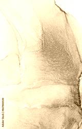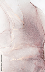 A close-up abstract painting featuring pink and gold hues, showcasing the flowing and swirling patterns of watercolor paint