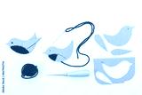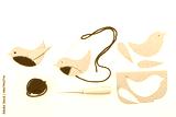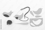 Craft project featuring bird shape made from brown cardboard, separate parts, needle for assembly. Plain white background accentuates handmade nature.