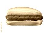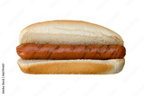 Grilled Hot Dog in Bun – A grilled hot dog on plain white hot dog bun. No condiments. Isolated on white with clipping path.