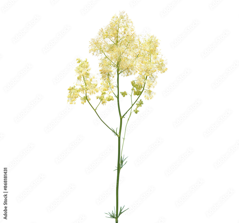 Yellow flower of shining meadow rue plant isolated on white, Thalictrum lucidum