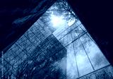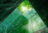 Eco-friendly building in modern city. Sustainable glass office building with trees for reducing carbon dioxide. Office building with green environment. Corporate building reduce CO2. Net zero emission