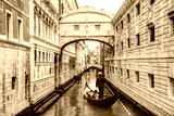 Gondolas floating on canal towards Bridge of Sighs (Ponte dei Sospiri). Venice, Italy