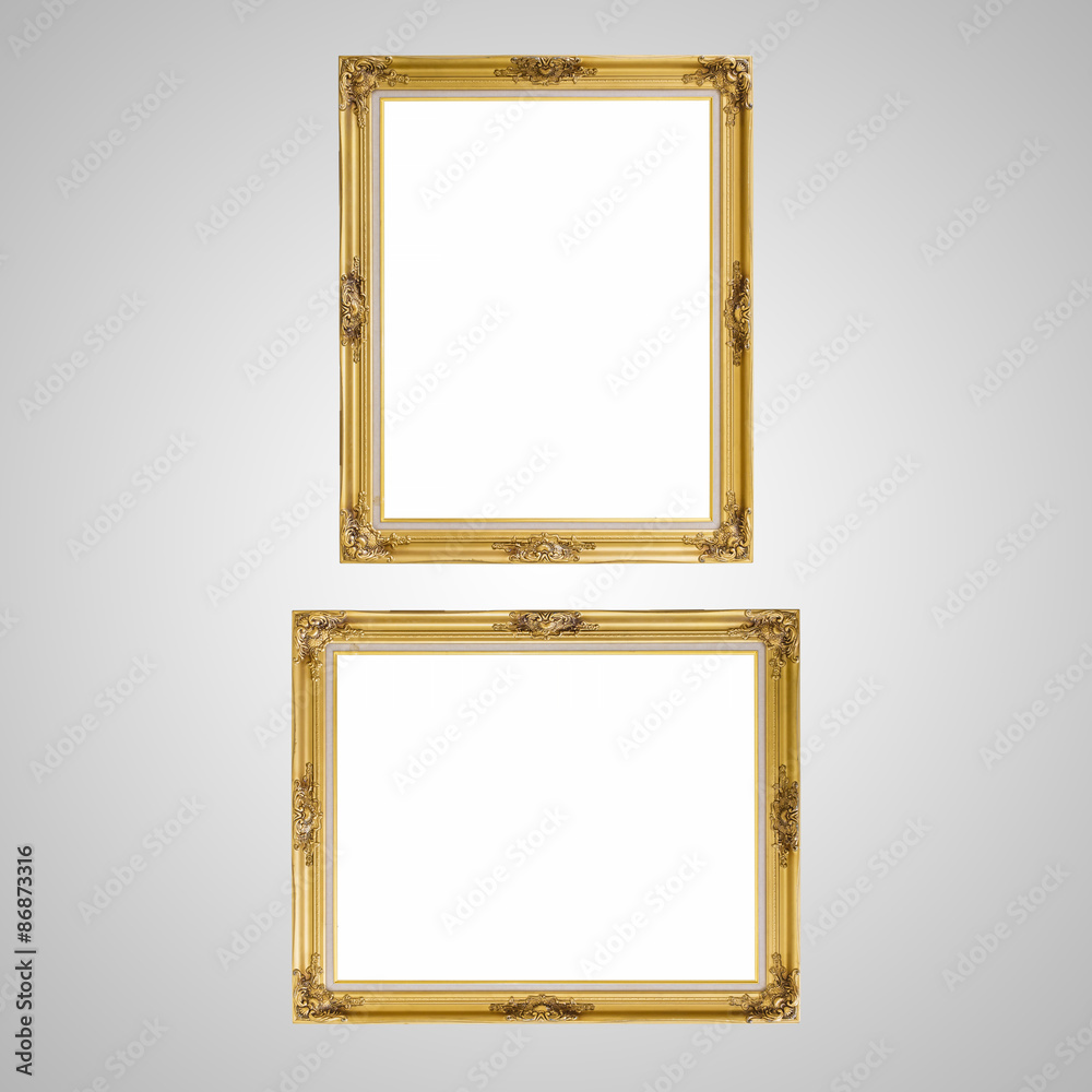 Gold louise photo frame over white background,isolated object