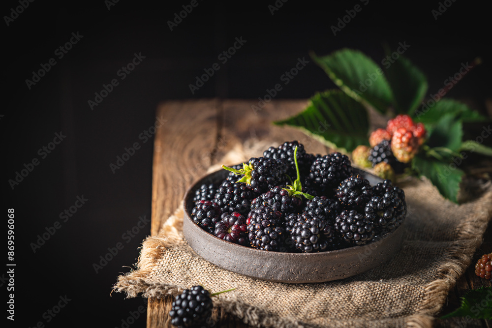 Ripe blackberries with leaves