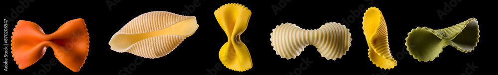Set of different type of pasta isolated on black background