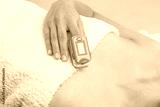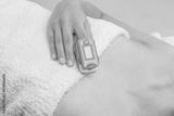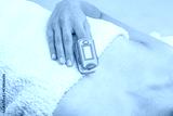 Woman using pulse oximeter at home. Female hand and medical equipment. Healthcare concept.