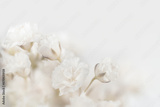 Beautiful blooming white gypsophila flowers and one single bud with light background and place for text macro