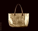 fashionable golden handbag on a black background