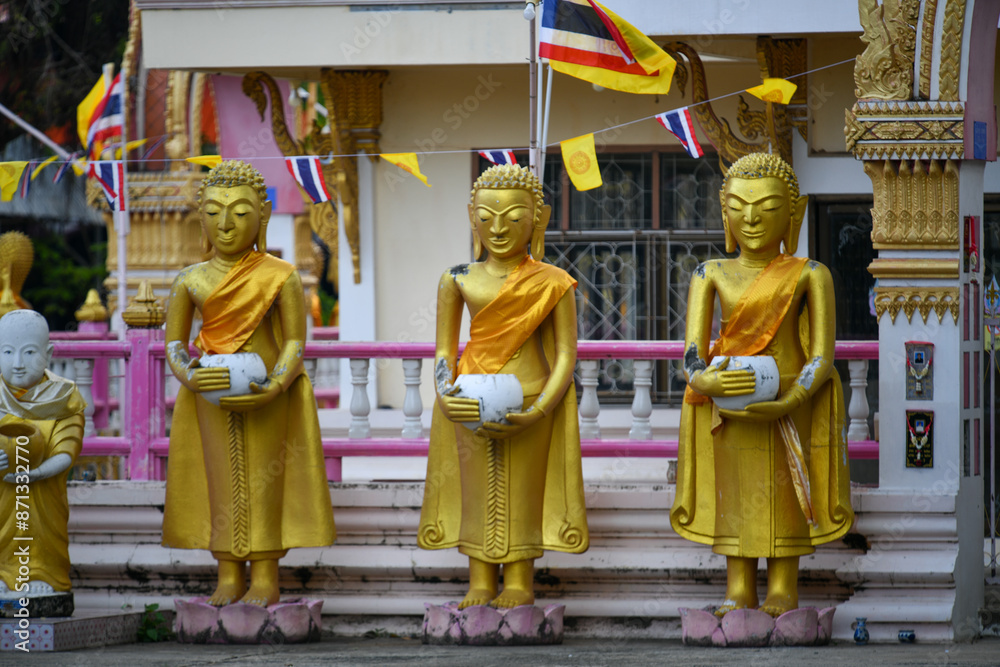 Standing Buddha statue. Buddhist sculpture. Statues of Buddha.