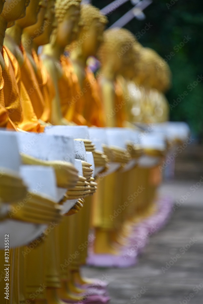 Standing Buddha statue. Buddhist sculpture. Statues of Buddha.