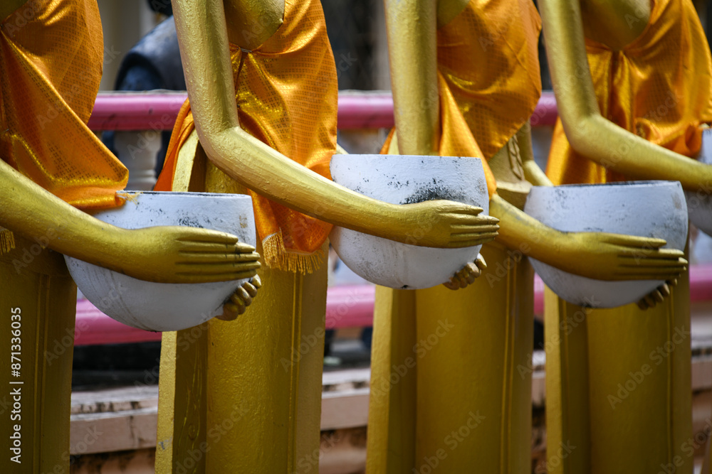 Standing Buddha statue. Buddhist sculpture. Statues of Buddha.