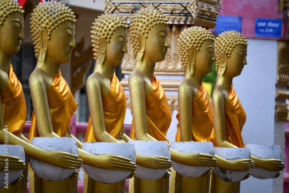Standing Buddha statue. Buddhist sculpture. Statues of Buddha.