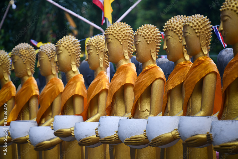 Standing Buddha statue. Buddhist sculpture. Statues of Buddha.