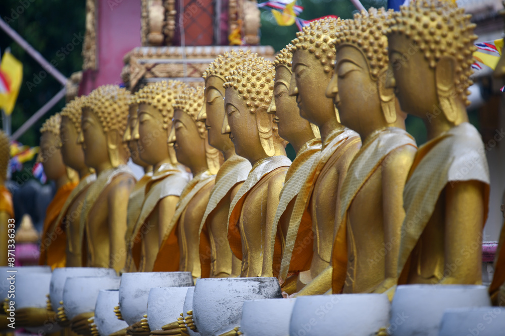 Standing Buddha statue. Buddhist sculpture. Statues of Buddha.