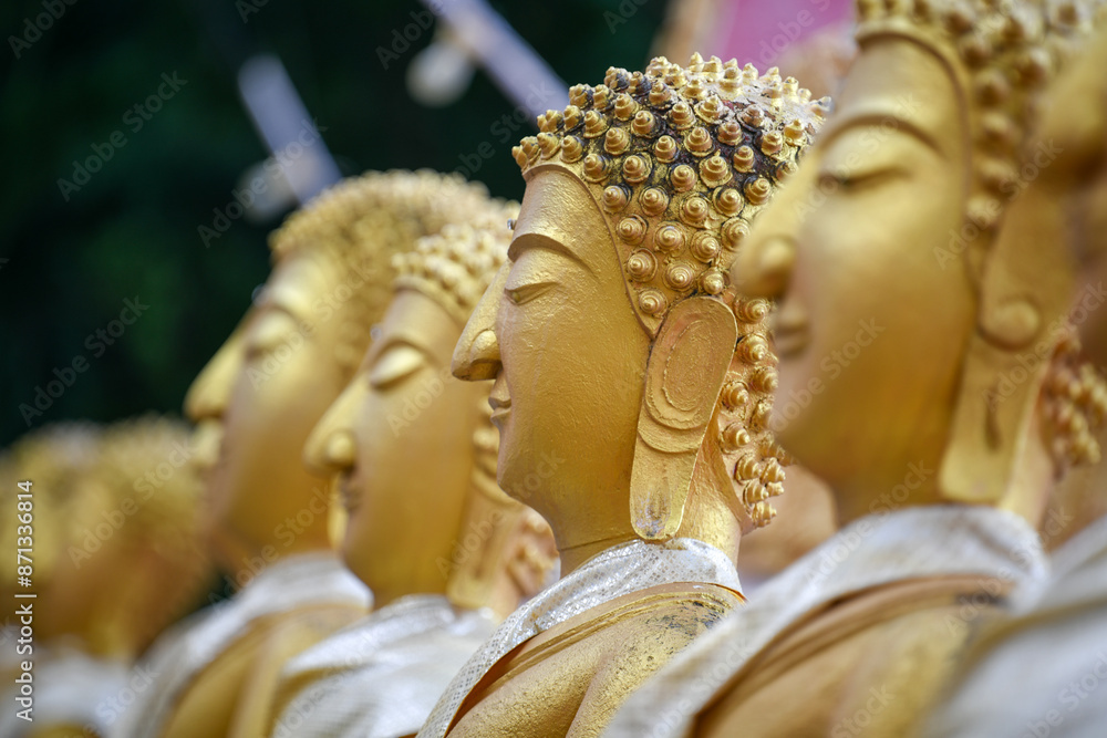 Standing Buddha statue. Buddhist sculpture. Statues of Buddha.