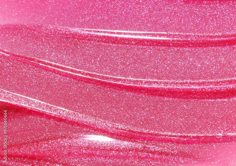 Pink shimmering lip gloss texture background. Smudged cosmetic product smear. Makup swatch product sample