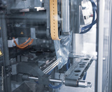 Automatic food packing machine. Food ingredients filling in plastic pouch package.