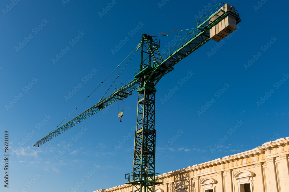 Gru che svetta nel cielo tra i palazzi